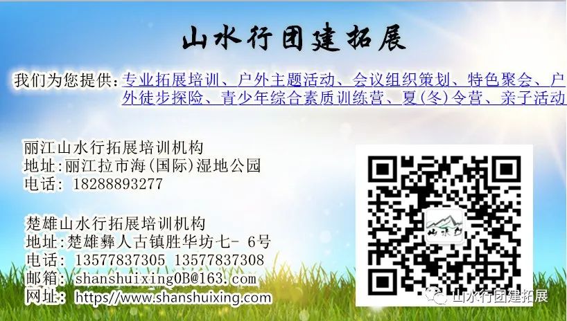 “山水行拓展培訓(xùn)機構(gòu)”全程策劃執(zhí)行本次團建活動。活動項目側(cè)重“趣味競技、寓教于樂”為基礎(chǔ),團隊文化建設(shè)拓展訓(xùn)練需求為主軸,麗江文化記憶基本元素為主線,結(jié)合東巴文化,少數(shù)民族服飾文化、茶馬文化、納西美食文化、納西打跳文化元素設(shè)計出麗江獨有的文化研學(xué)旅行團隊建設(shè)課程。我們也希望通過這樣一場古城文化定向團建能夠為這個團隊加深同事們之間的感情,增強公司的凝聚力做出一些幫助。